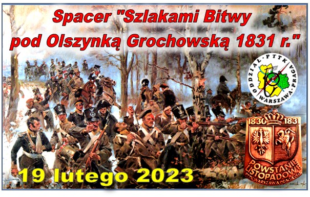 W dniu 23 listopada 2019 r. 6 osobowa reprezentacja naszego Oddziału PTTK z kol. Prezes na czele, uczestniczyła w obchodach 189 rocznicy wybuchu Powstania Listopadowego przy pomniku bitwy pod Olszynką Grochowską. Uroczystość przygotowana przez Urząd Dzielnicy Warszawa Praga Płd. zgromadziła poczty sztandarowe południowo-praskich szkół, organizacji kombatanckich, przedstawicieli władz samorządowych oraz naszą reprezentację Oddziału PTTK. Uroczystości rozpoczęły się od odśpiewania hymnu narodowego oraz przemówienia Burmistrza Dzielnicy oraz modlitwy za tych co zginęli poprowadzonej przez księdza z pobliskiego kościoła. Następnie zebrani odśpiewali nieoficjalny hymn tamtych wydarzeń "Warszawiankę". Reprezentacje różnych środowisk złożyły wieńce i kwiaty natomiast nasi przedstawiciele postawili tradycyjne zielone znicze. Mimo pochmurnego poranka i chłodu ok. 2 st. C i lekkiego wiatru odbył się III Bieg Olszynki Grochowskiej na dystansie 5 i 10 km. Z naszego zespołu Andrzej Krochmal pokonał dystans 5 km za co na mecie otrzymał piękny okolicznościowy medal, a także okolicznościową koszulkę i kubek z historycznymi nadrukami. Natomiast wszyscy mogli się raczyć gorącą grochówką i herbatą oraz zrobić sobie pamiątkowe zdjęcie na tle obrazu Wojciecha Kossaka "Olszynka Grochowska". W dobrych nastrojach wracaliśmy do domu.